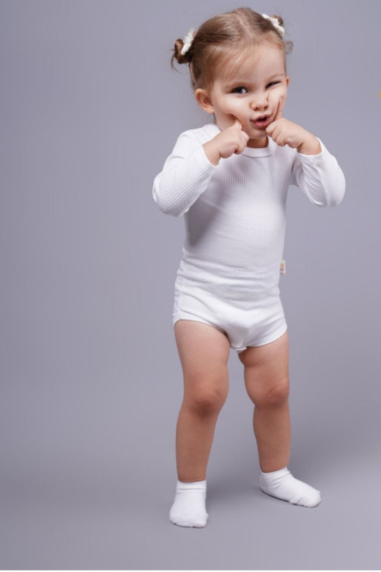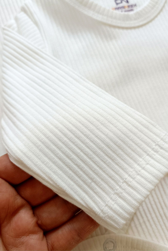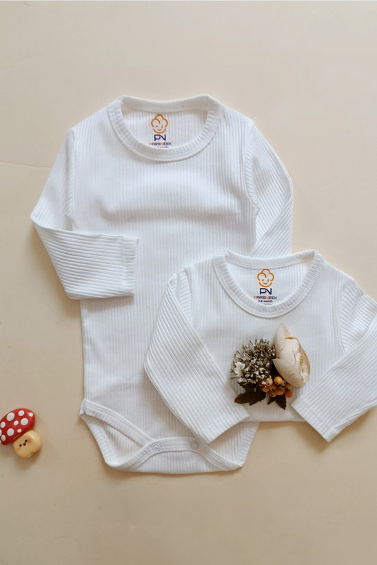 **بادی آستین بلند نوزادی سفید** یک انتخاب کاربردی و ضروری برای هر سیسمونی است.