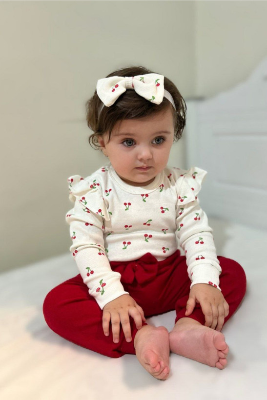 ست بادی و شلوار نوزادی و بچگانه طرح گیلاس از برند خوب ایرانی ، یه انتخاب شیرین و خاص برای کوچولوی دوستداشتنی شماست 💕