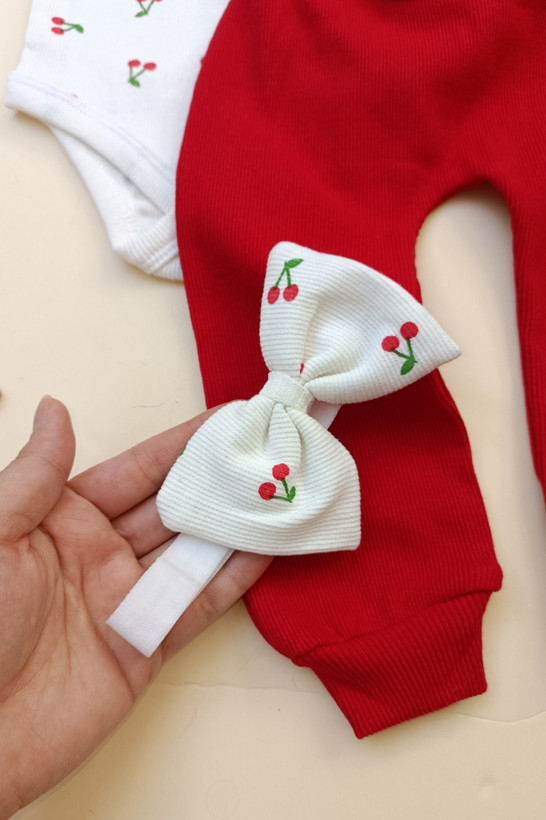 ست بادی شلوار نوزادی و بچگانه طرح گیلاس