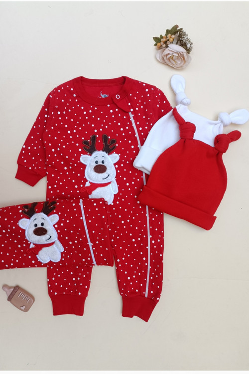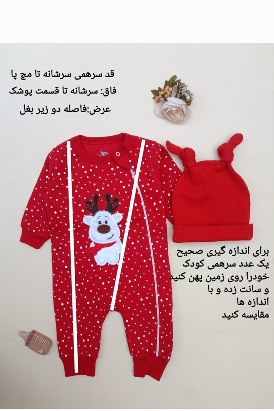 سرهمی بدون جوراب زیپدار یلدایی کریسمسی انتخابی عالی برای ثبت خاطرات شیرین نوزادی و بچگانه،بسیار لطیف صددرصد پنبه ست